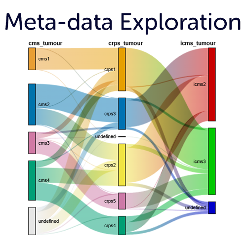 The R2 platform allows you to visualize, explore and statistically analyze all of the meta data that is provided by the different resources in interactive plots. In addition, you can add your own (private) grouping variables based on your analysis results, or using our intuitive metadata creators. Visualize the annotations in comprehensive plots such as Sankey plots, multi layered circle plots, heatmaps and more.